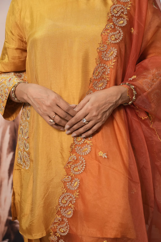Mustard & Rust Pure Silk Farsi Salwar Suit Dupatta Set | Zari Work Ethnic Wear