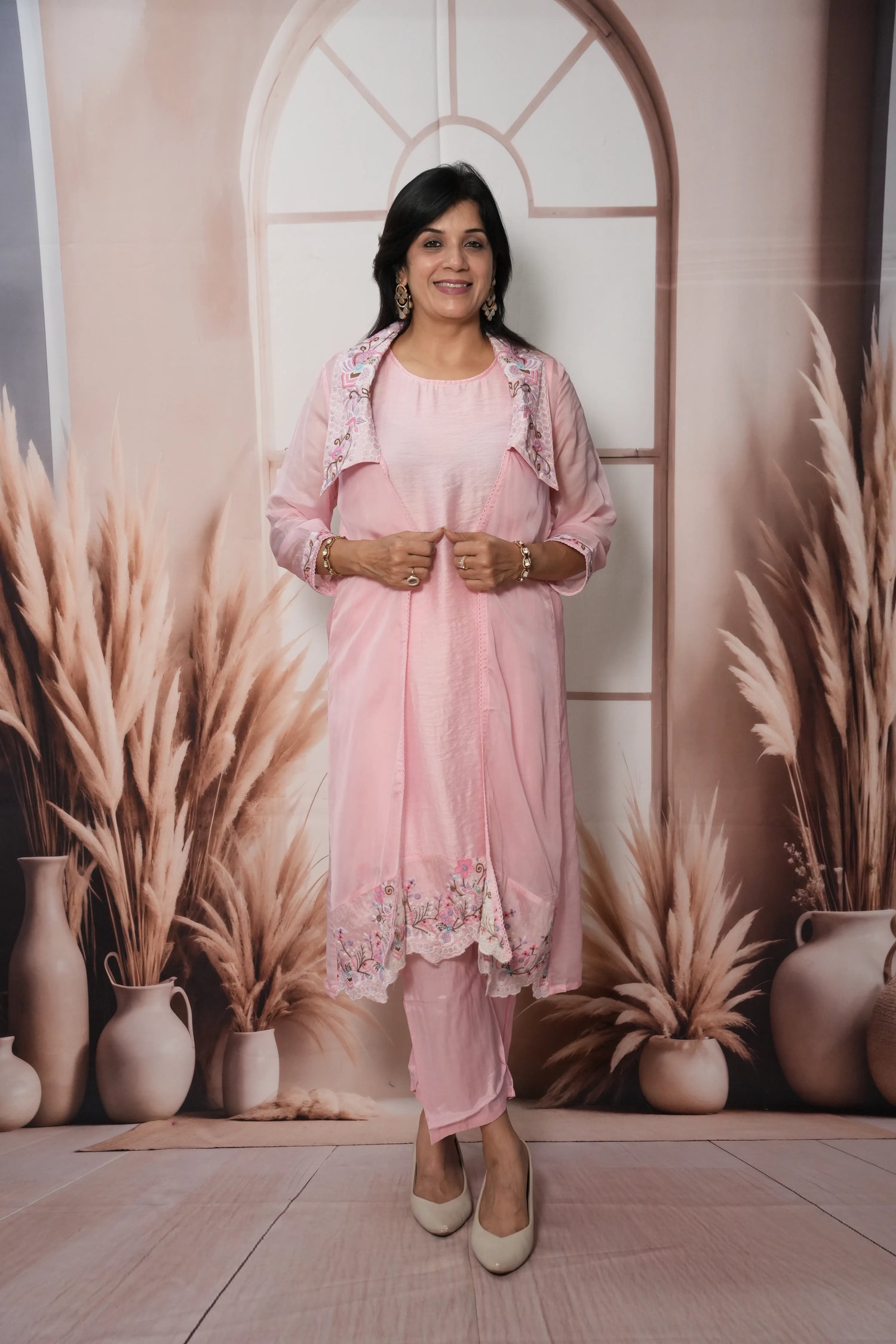 Royal Fuchsia Mul Chanderi Angrakha Style Dupatta Set with Pearl Embroidery