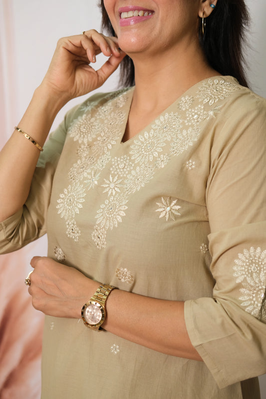 Beige Embroidered Co-ord Set | Flex Cotton | Elegant Everyday Wear