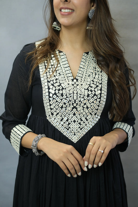 Black Anarkali with Thread Work & Inner | Mul Cotton