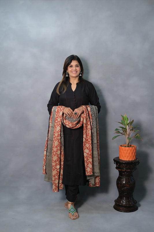 Beautiful Black Anarkali with Kalamkari Dupatta | Soft Cotton