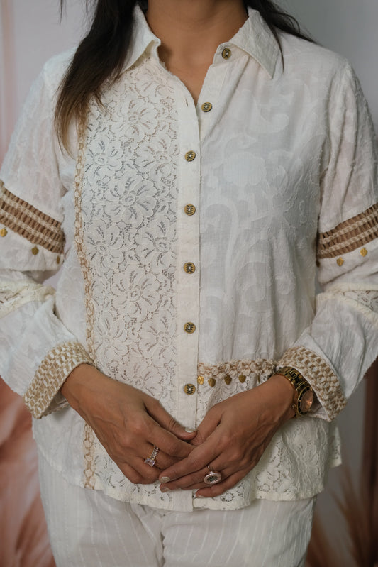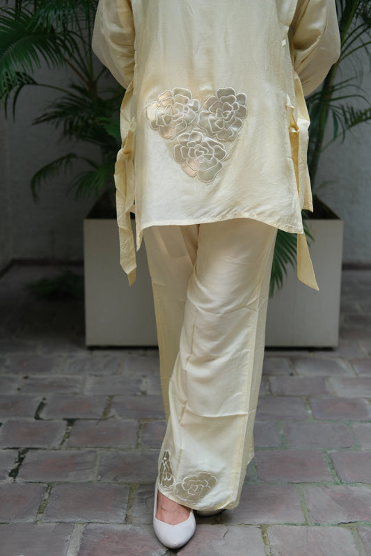 Cream Mul Chanderi Co-ord Set with Appliqué & Embroidery Work