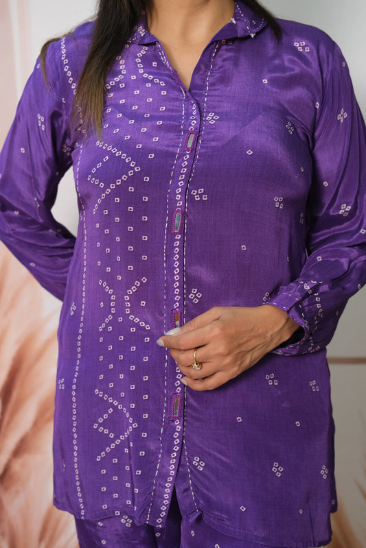 Royal Purple Pure Crepe Co-ord Set with Bandhej Print