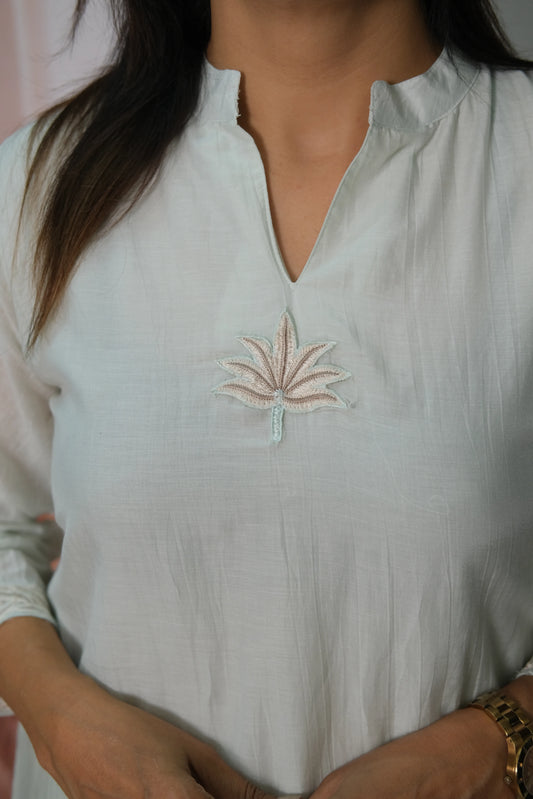 Glacial Green Mul Chanderi Co'ord Set with Cut Work & Embroidery