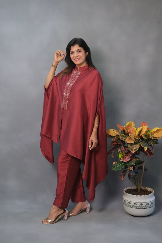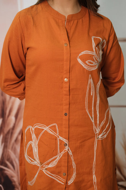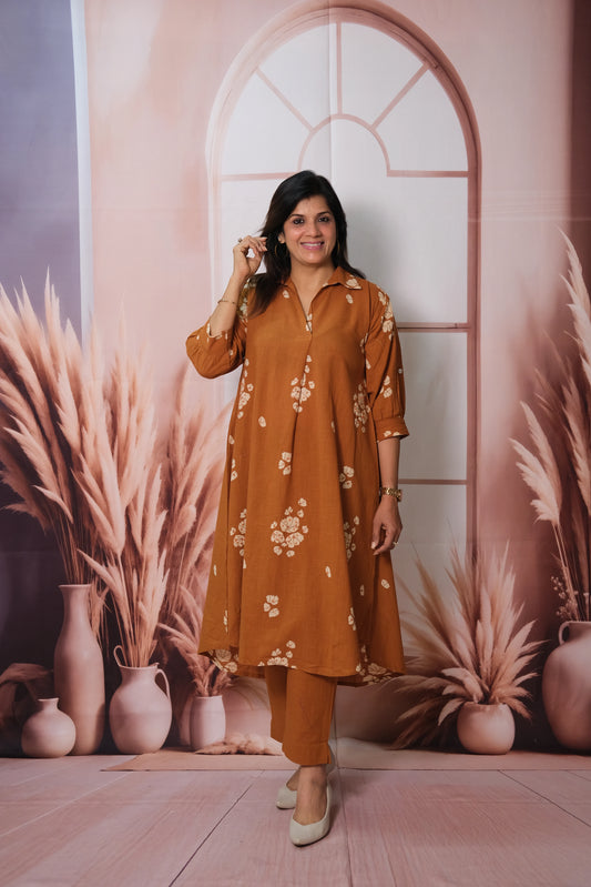 Rust Co-ord Set in Flex Cotton with Embroidery