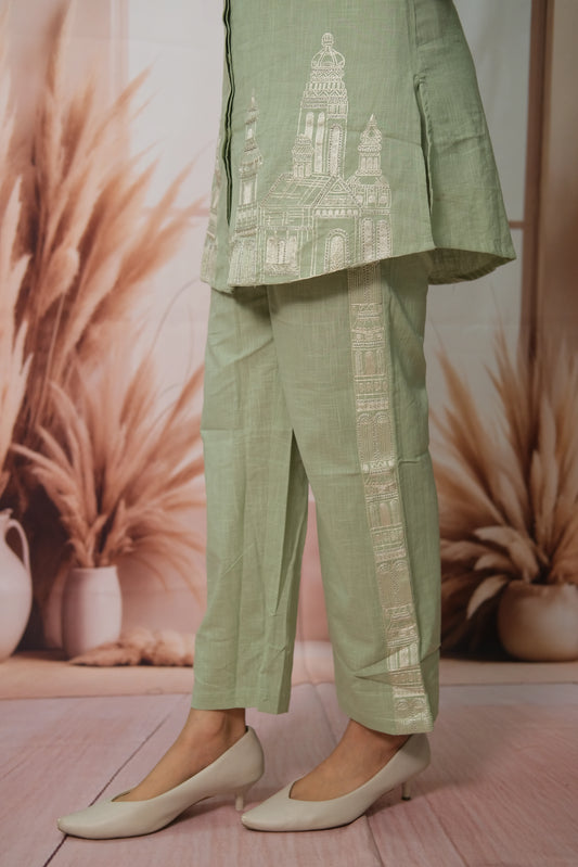 Mint Green Co-ord Set in Flex Cotton with Thread Embroidery – Effortless Everyday Elegance