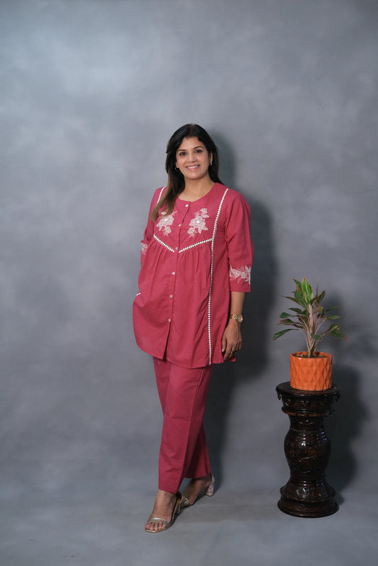Pink Embroidered Co-ord Set | Mul Cotton