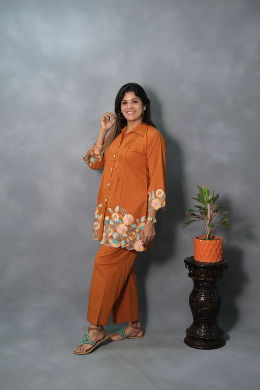 Rust Embroidered Co-ord Set | Mul Cotton