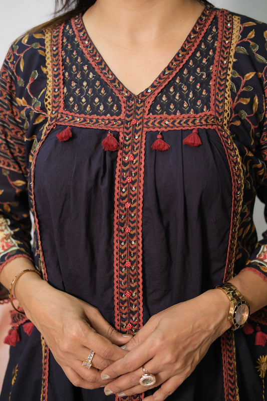 Dark Navy Soft Cotton Kurta Pant Set with Pearl & Sequin Work