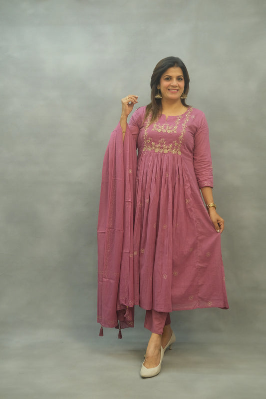 Embroidered Flex Cotton Two-Piece Set – Graceful & Comfortable Ethnic Wear