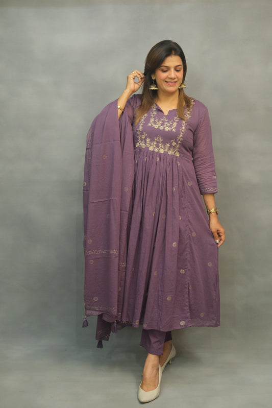 Graceful Mul Cotton 3-Piece Suit – Elegant Ethnic Wear - Purple