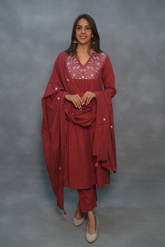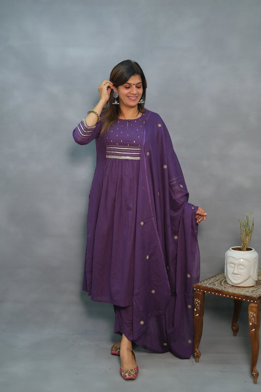 Elegant Soft Cotton Flared 3-Piece Suit – Graceful & Comfortable Ethnic Wear