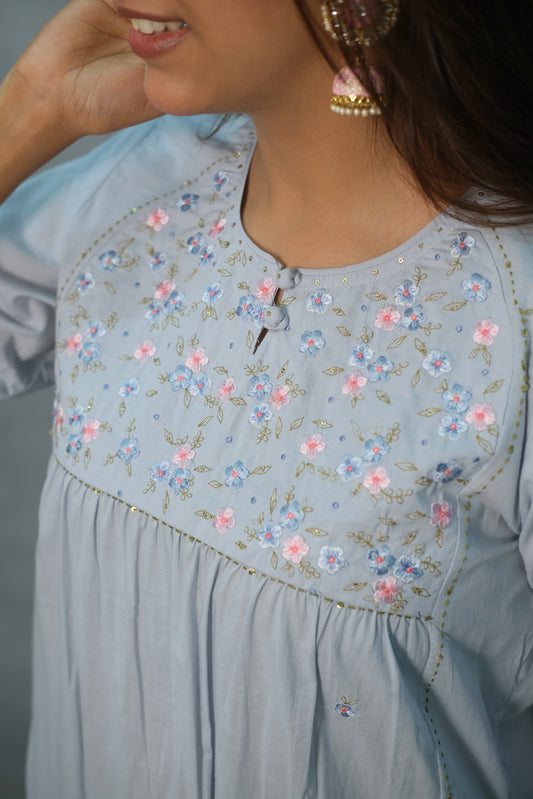 Light Grey Embroidered 2-Piece Mul Cotton Suit Set – Subtle & Sophisticated