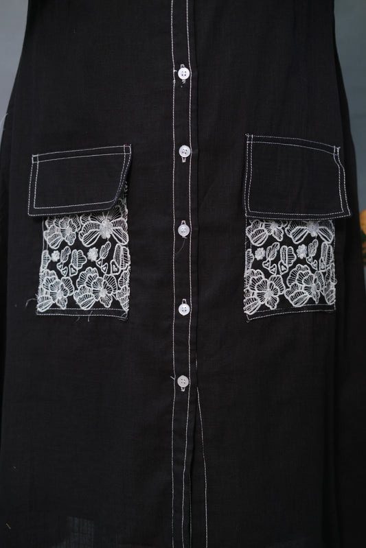 Black Embroidered One Piece with Pockets | Pure Cotton