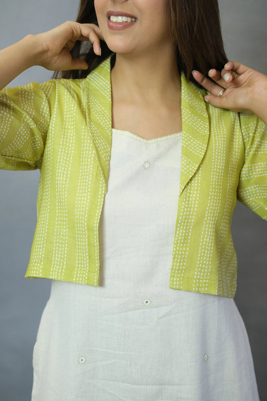 White One Piece with Lemon Green Shrug | Flex Cotton
