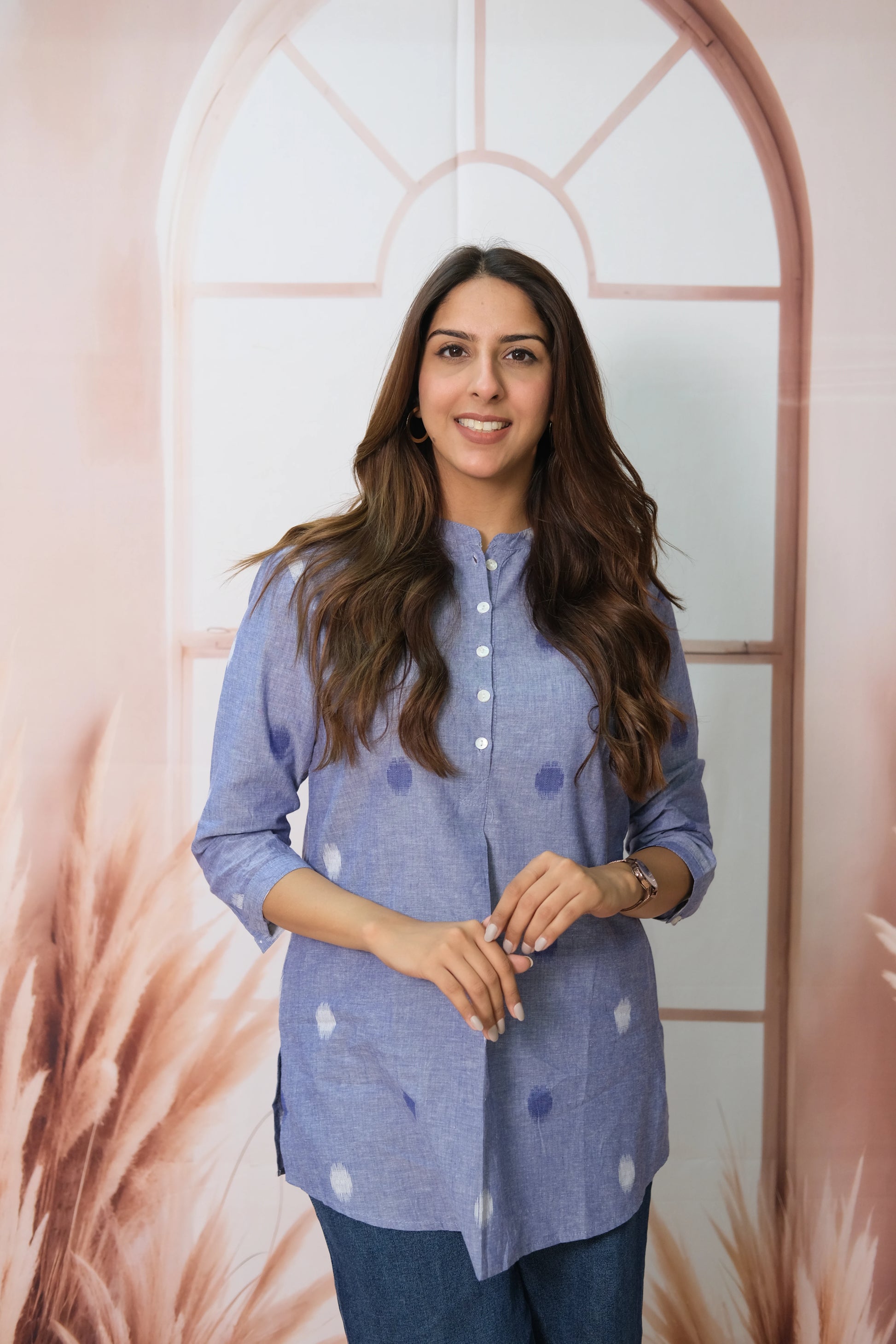Blue Short Top – Cotton Daily Wear with Printed Polka Dot Charm