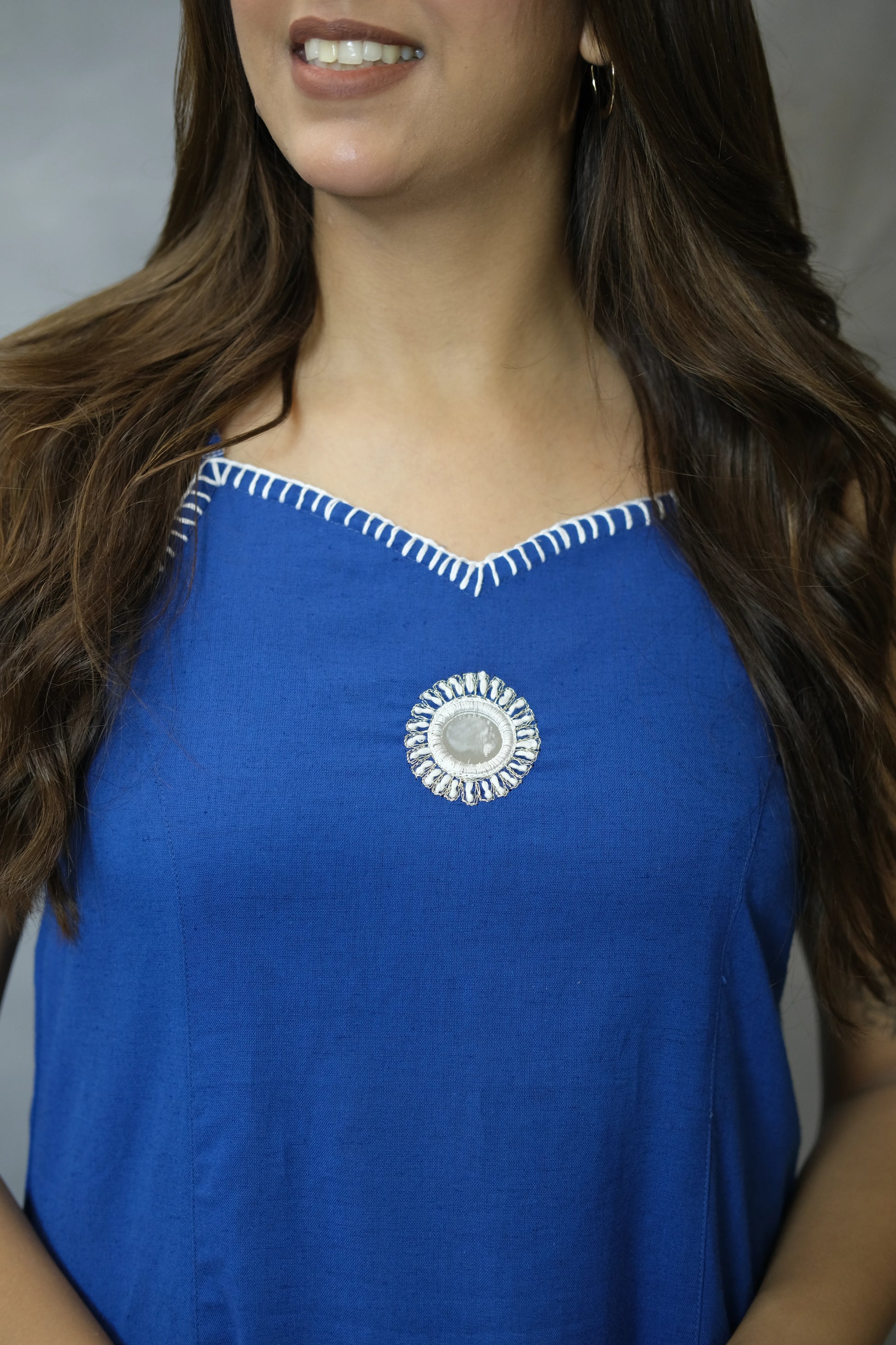 Blue Sleeveless Spaghetti Kurta Pant Set | Flex Cotton