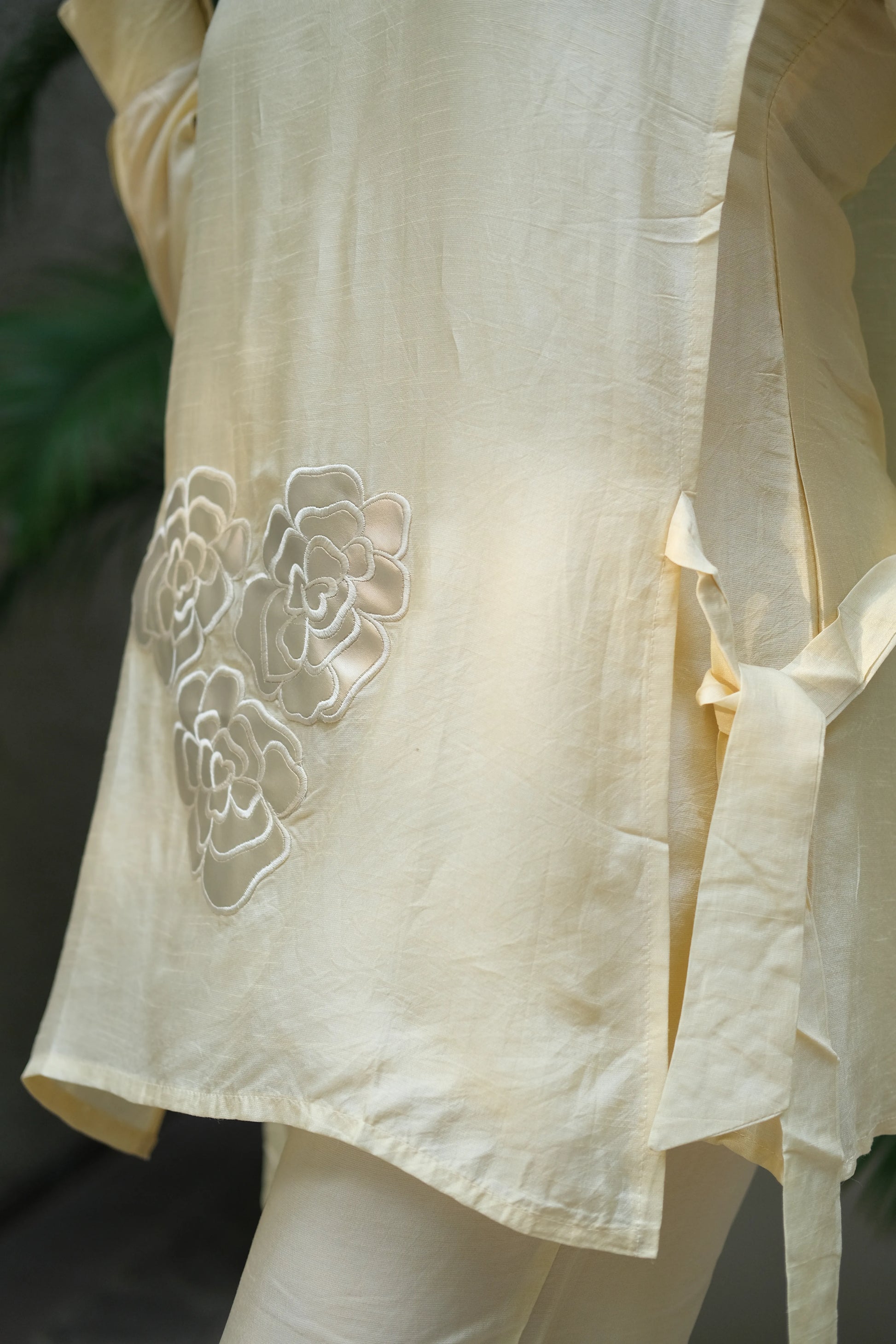 Cream Mul Chanderi Co-ord Set with Appliqué & Embroidery Work