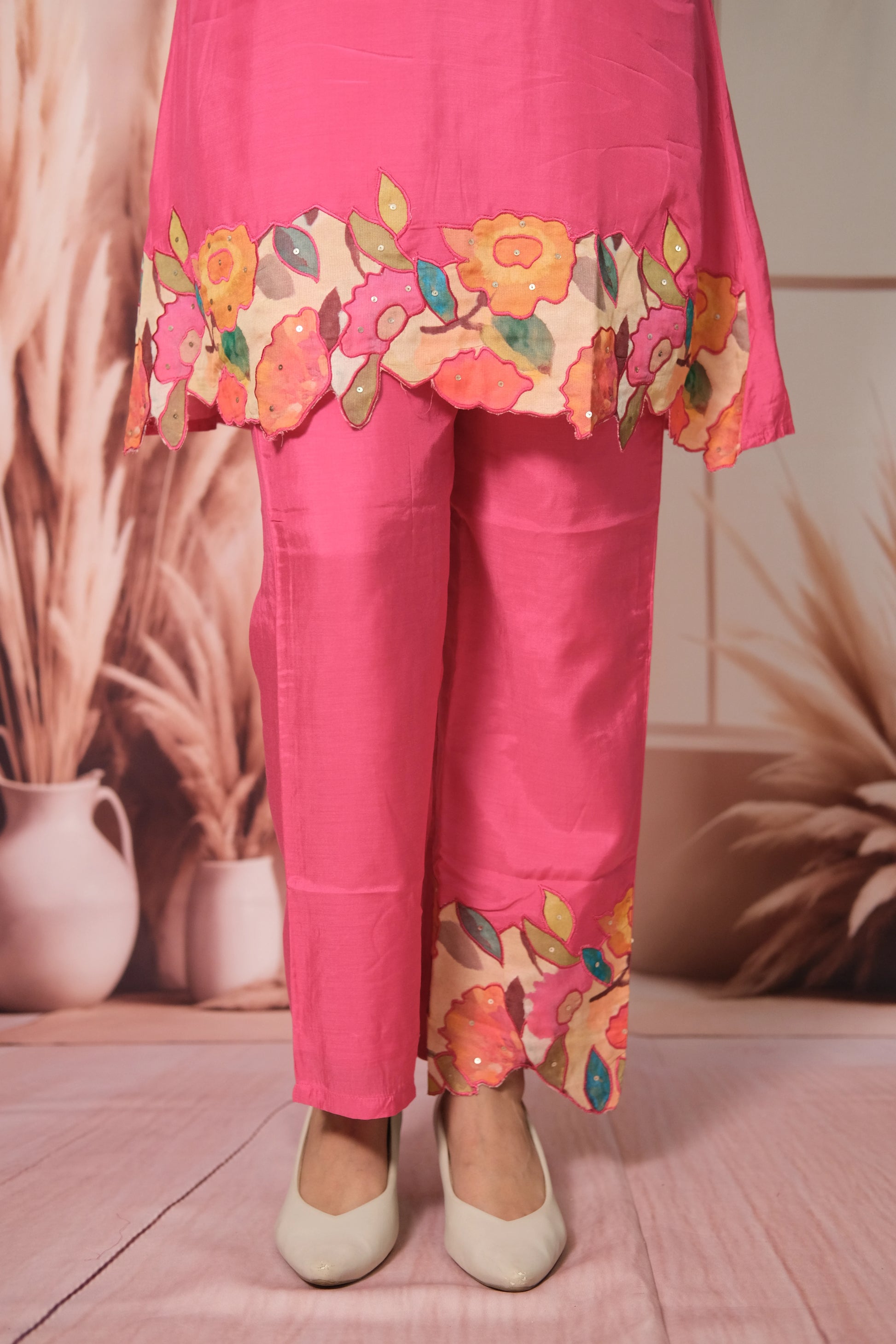 Whether you're stepping into a festive gathering, an evening celebration, or a cultural event, this co-ord is crafted for women who own their presence. The vivid hot pink hue radiates confidence, while the modern silhouette keeps your look sleek and celebration-ready.