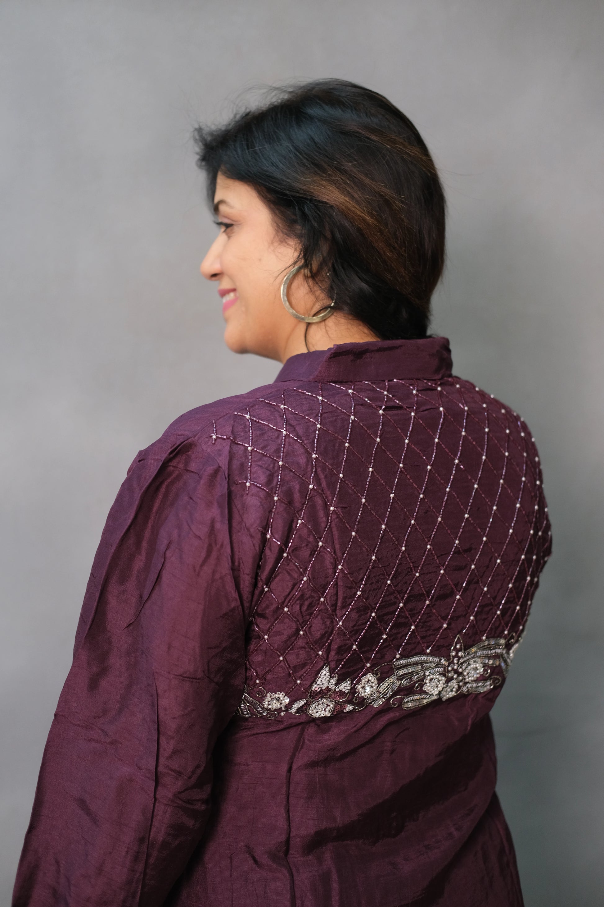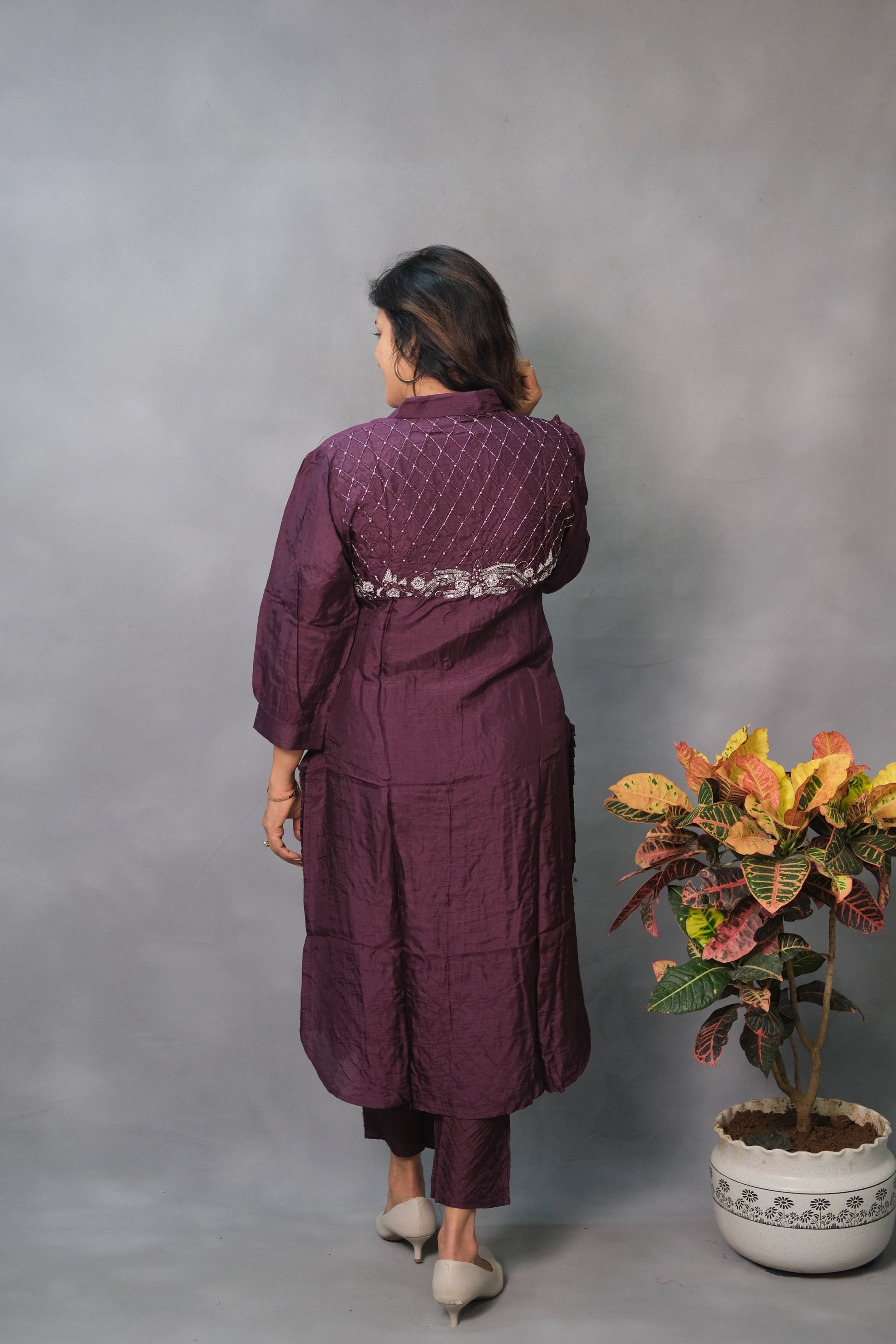 Command attention with quiet confidence in this Embroidered Back Kurta Pant Set, where Dola silk meets striking design detail. Tailored for the woman who values both comfort and couture, this set brings traditional elegance to the forefront with a modern twist.