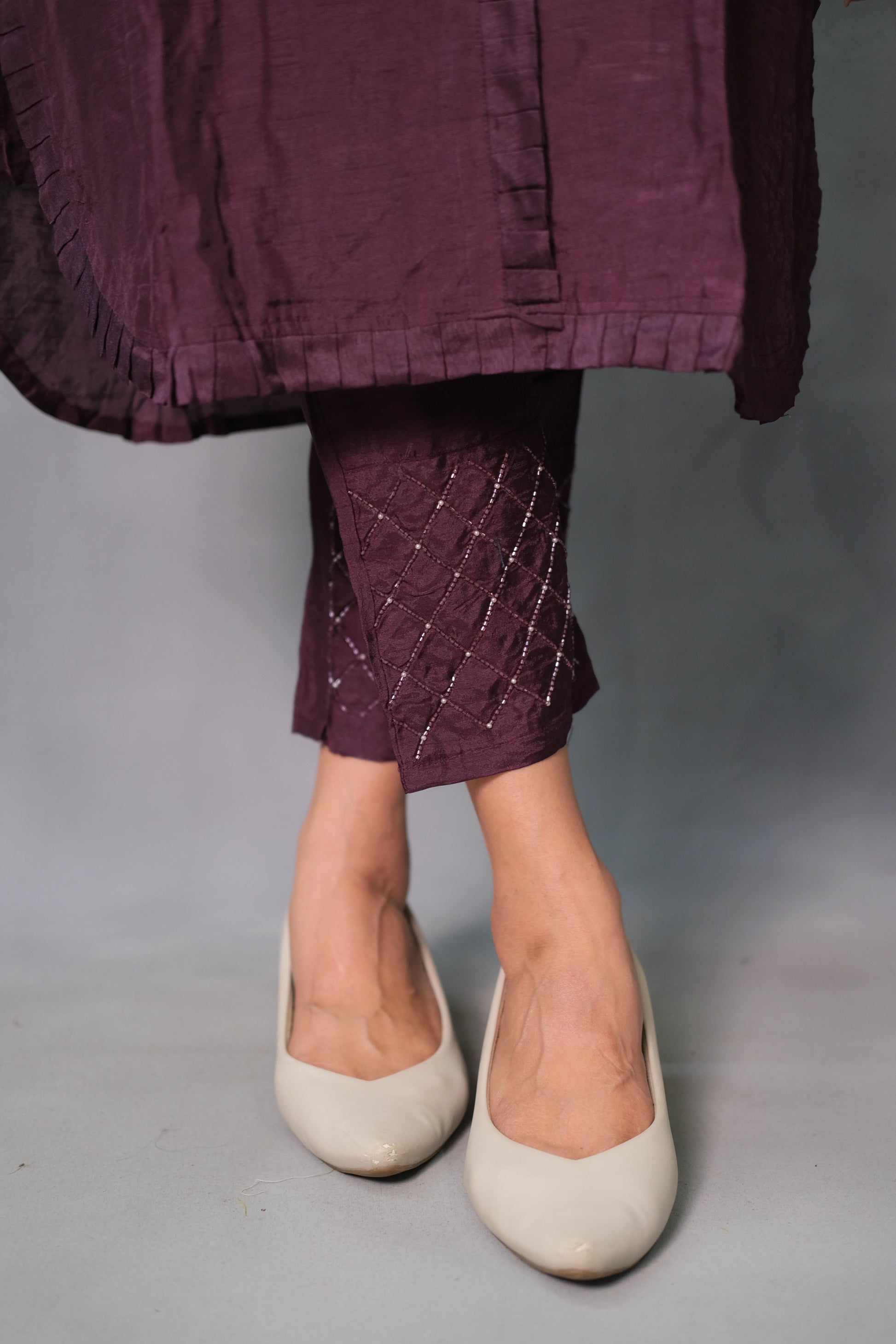 Embroidered Back Kurta Pant Set – Dola Silk Elegance for Modern Women