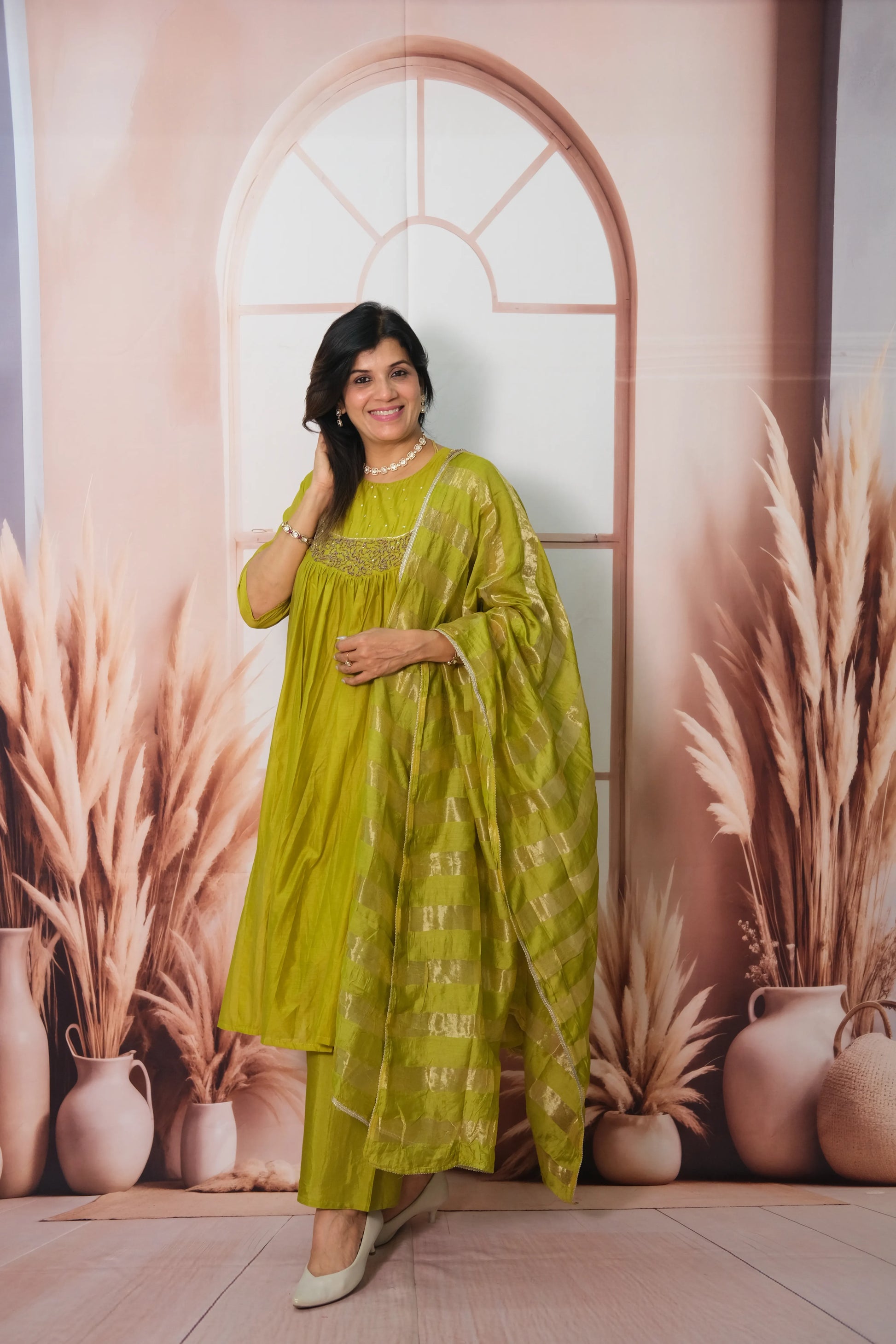 - Fabric: Mul Chanderi – lightweight, breathable & flowy