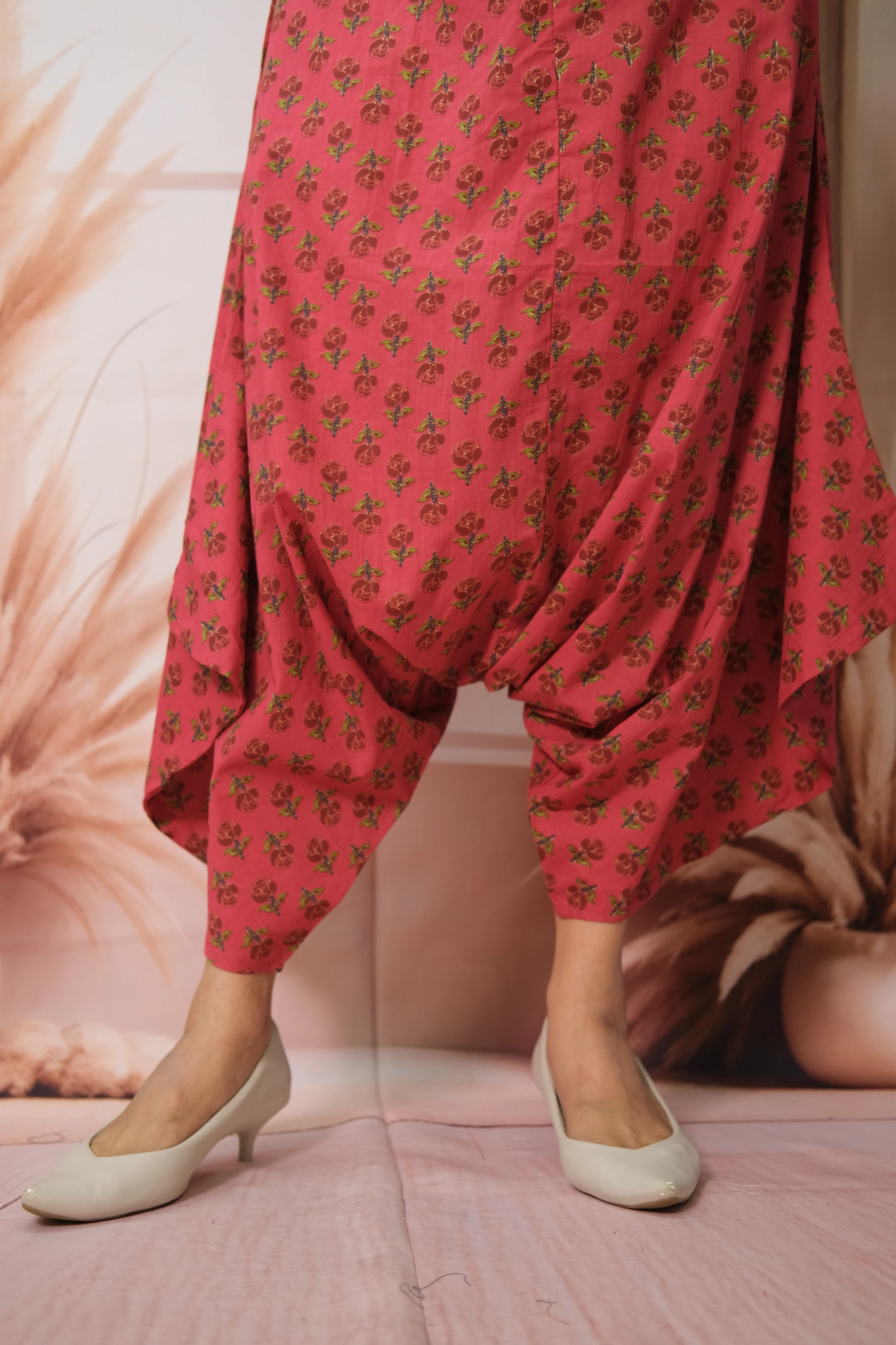 Pink Jumpsuit with Floral Printed Koti in Soft Cotton – Festive Fusion Elegance