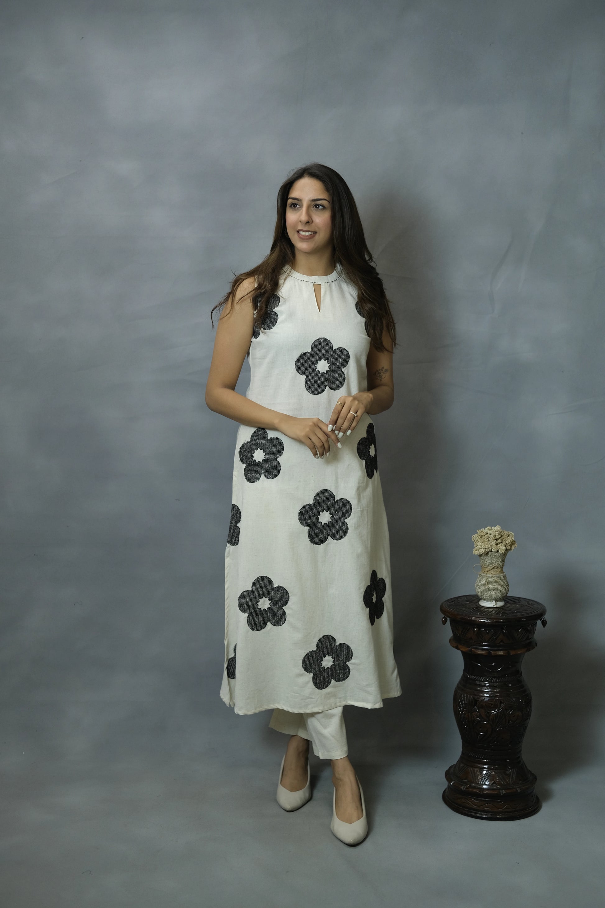 Sleeveless Kurta Pant Set with Thread Work | Flex Cotton
