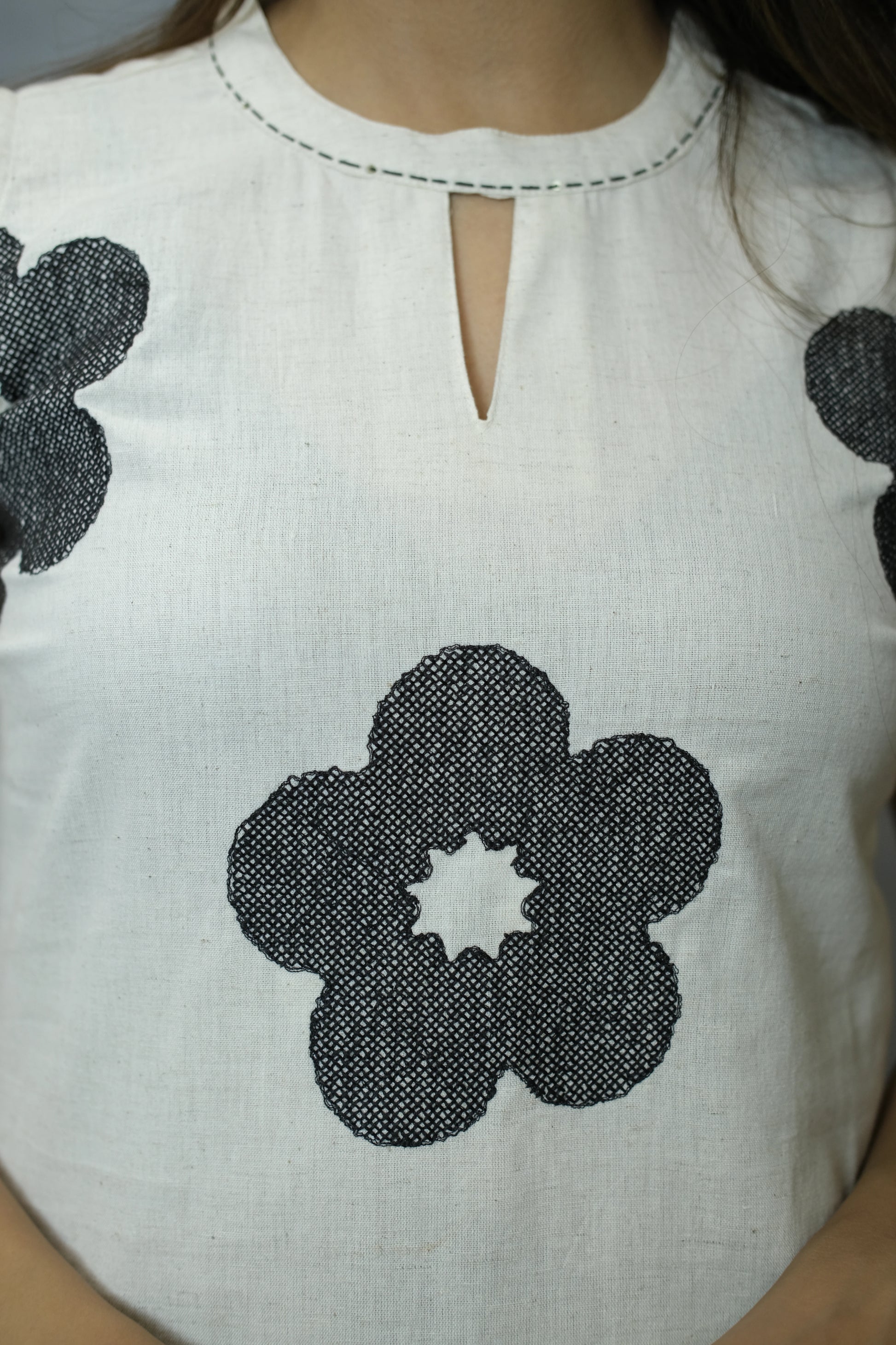 🔹 Design: Intricate Thread Work on a minimalist sleeveless silhouette
