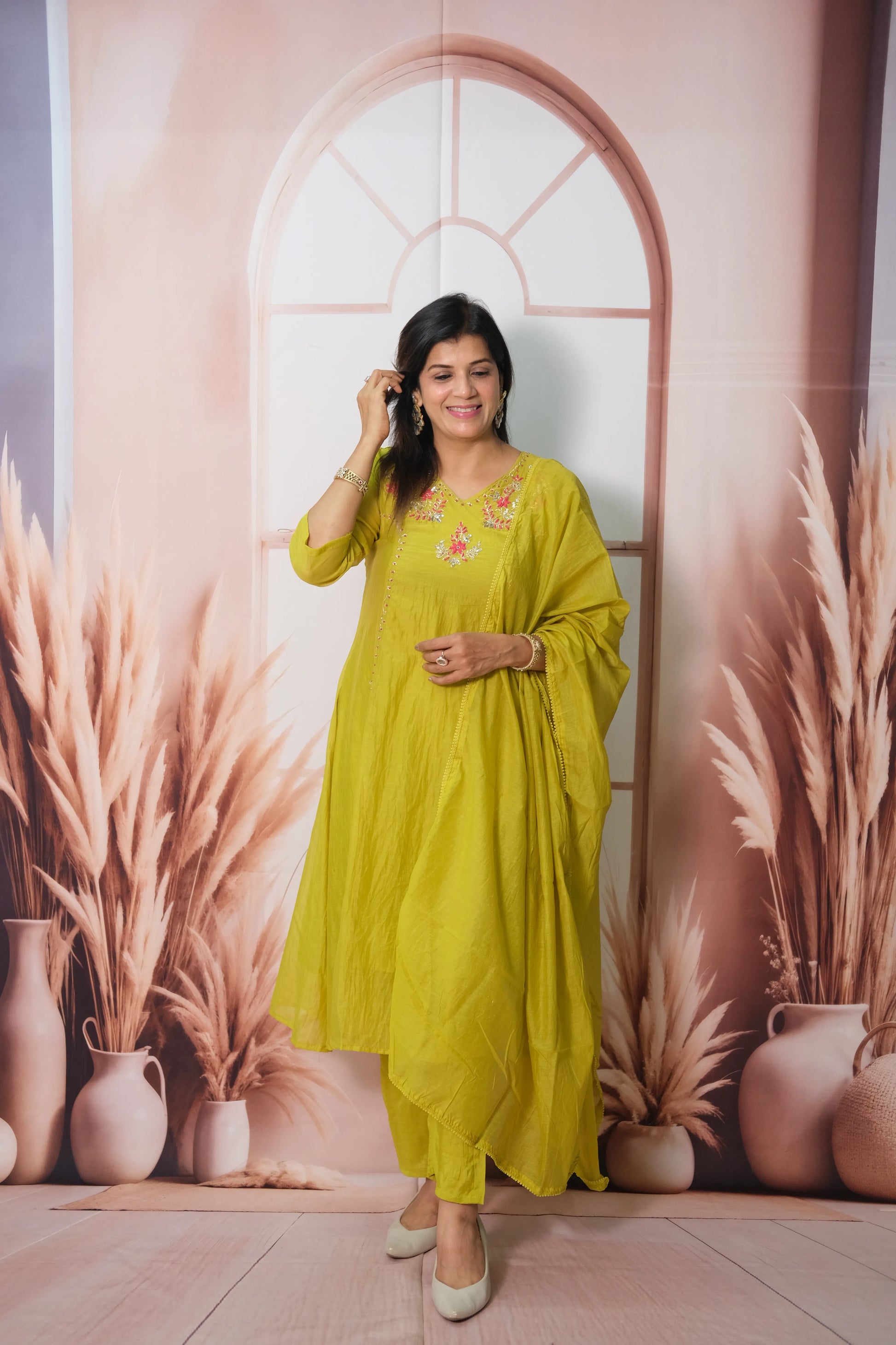 Sulphur Spring Mul Chanderi Kurta Dupatta Set with Pearl & Sequin Embroidery