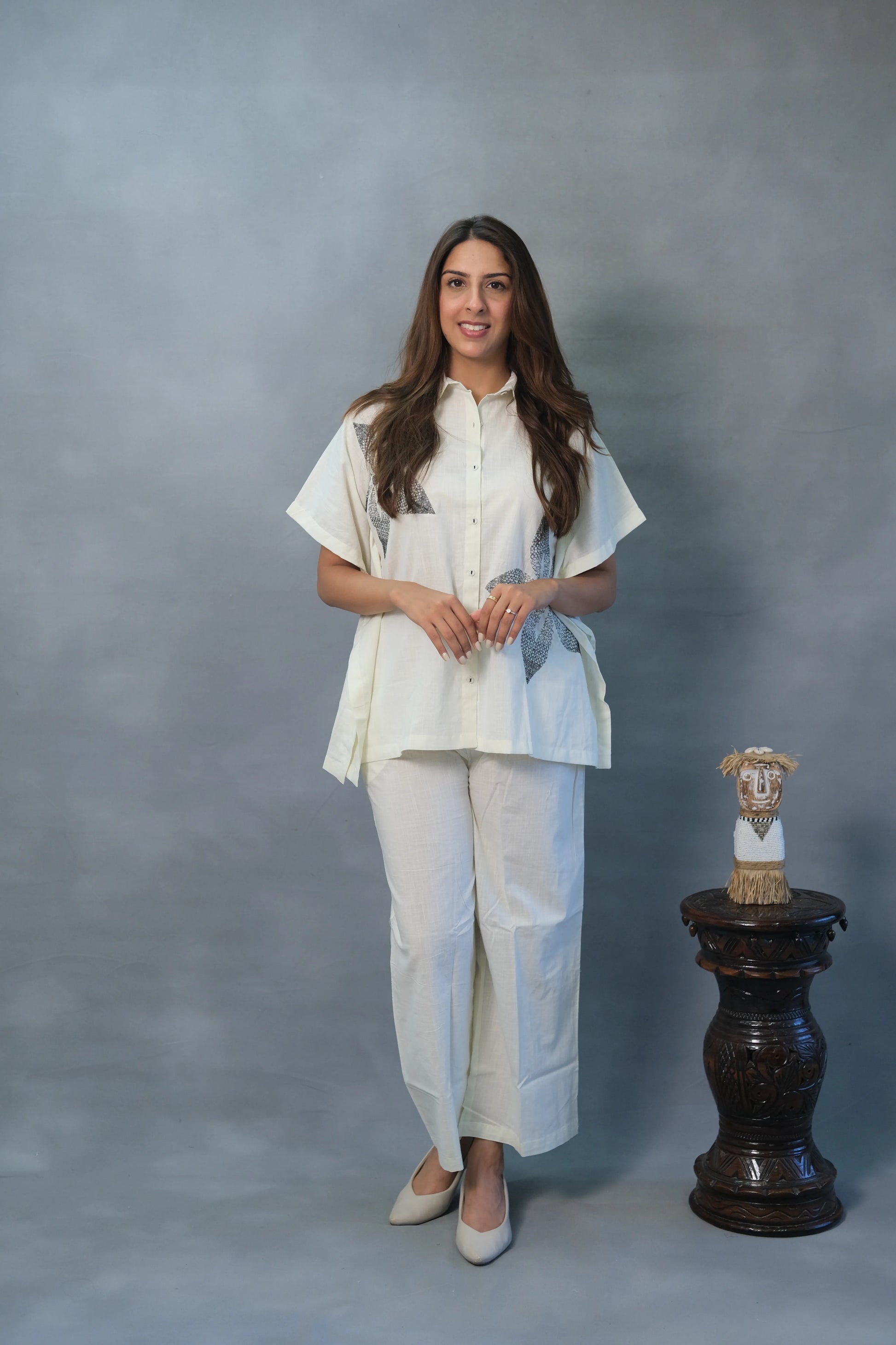 Cream Co-ord Set with White Embroidery | Soft Cotton