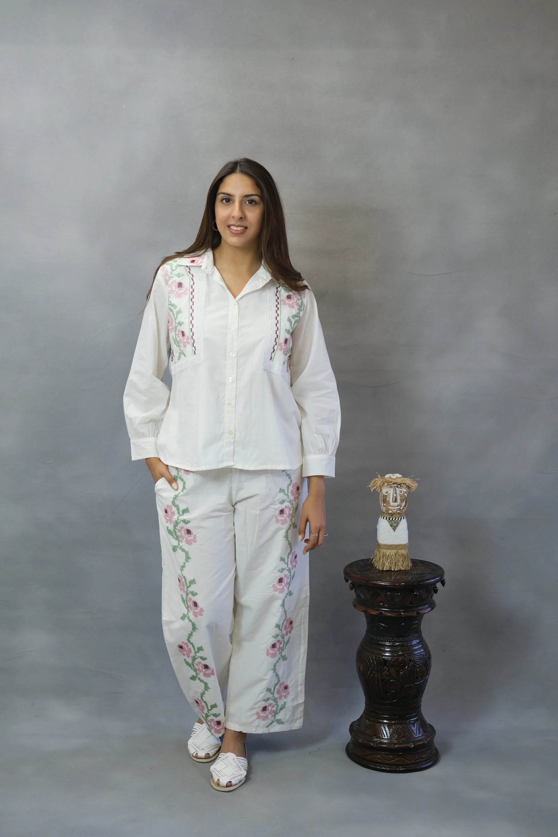 White Floral Embroidered Co-ord Set | Soft Cotton